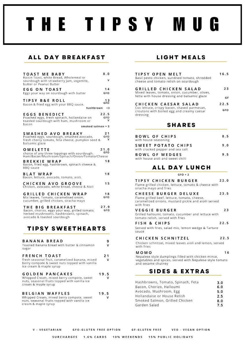 Welcome to The Tipsy Mug, a delightful café nestled in Gungahlin, Australia. This charming spot, located at Shop G05/2 Gribble St, offers a menu brimming with variety that caters to every palate.